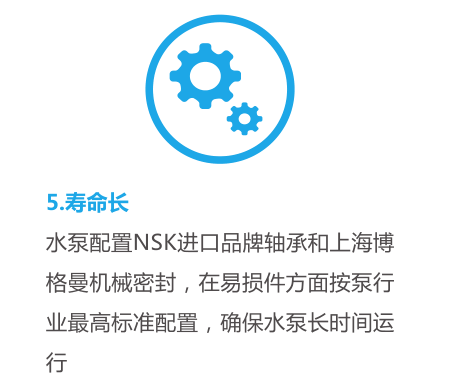 水泵配置NSK進口品牌軸承和上海博格曼機械密封,在易損件方面按泵行業(yè)標
